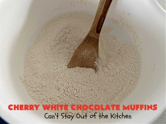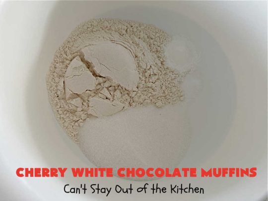 For those of you who enjoy fruity muffins for breakfast, this one satisfies. For those of you who want chocolate for breakfast, this one pleases those sweet tooth cravings. It’s a terrific brunch or breakfast idea for holidays, special occasions and a company breakfast. But beware! You’ll be wolfing down Cherry White Chocolate Muffins like there’s no tomorrow. š