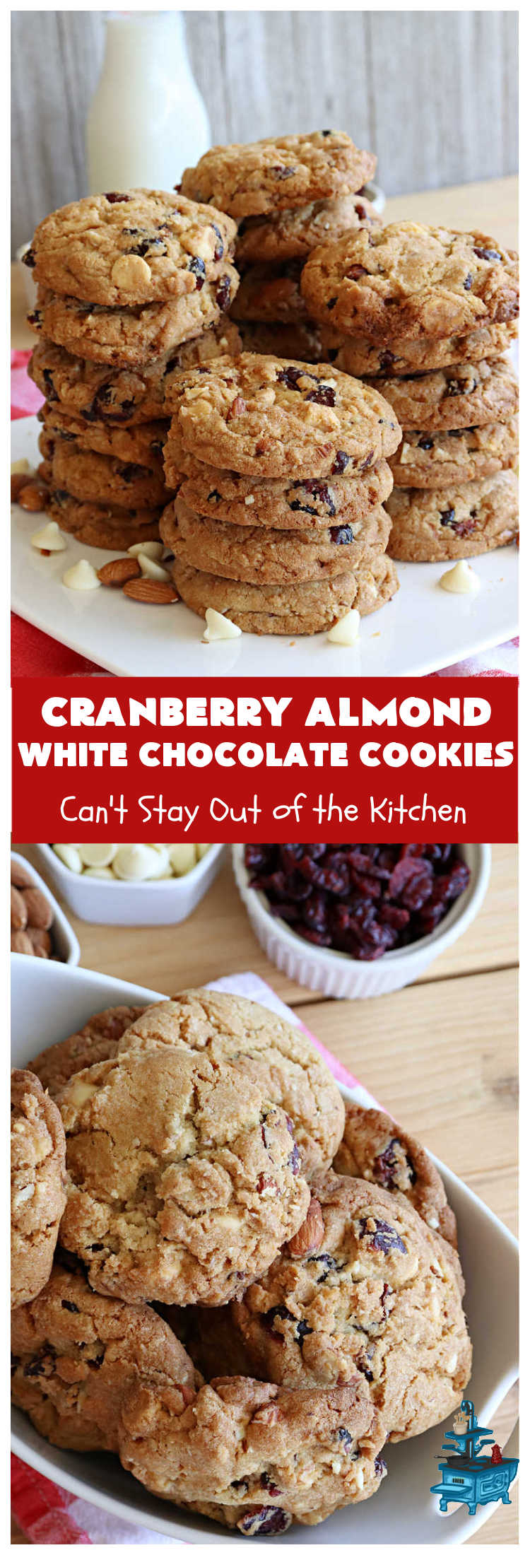 Add dried cranberries and white chocolate chips (NOT vanilla chips or premiere white baking chips).