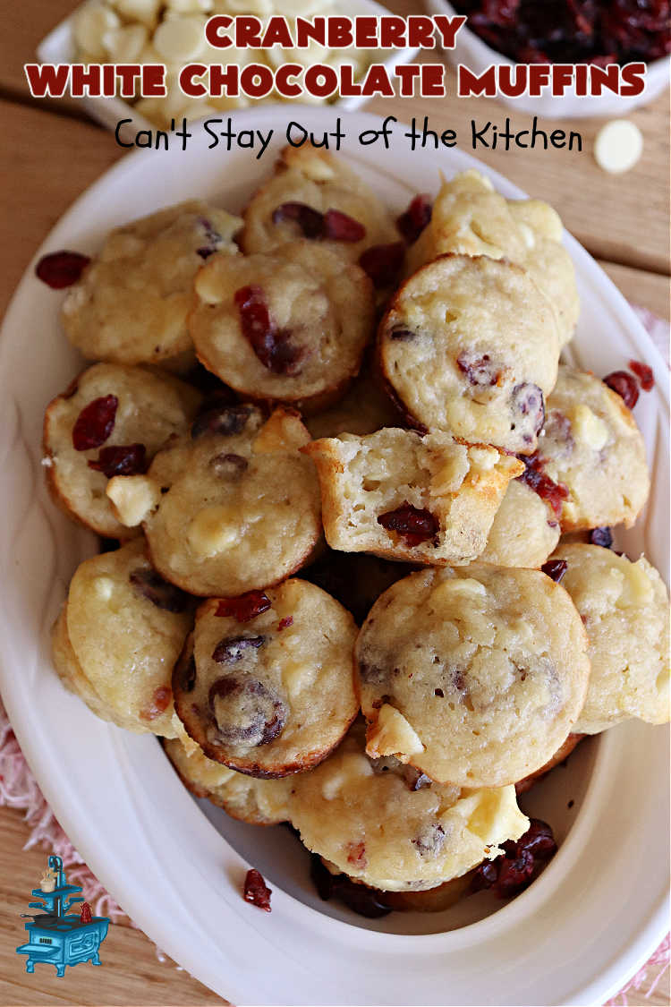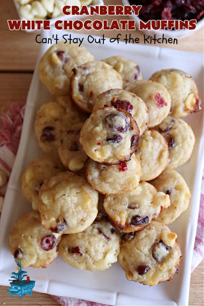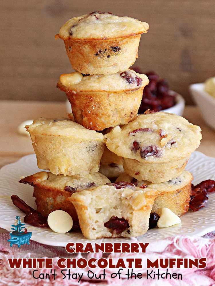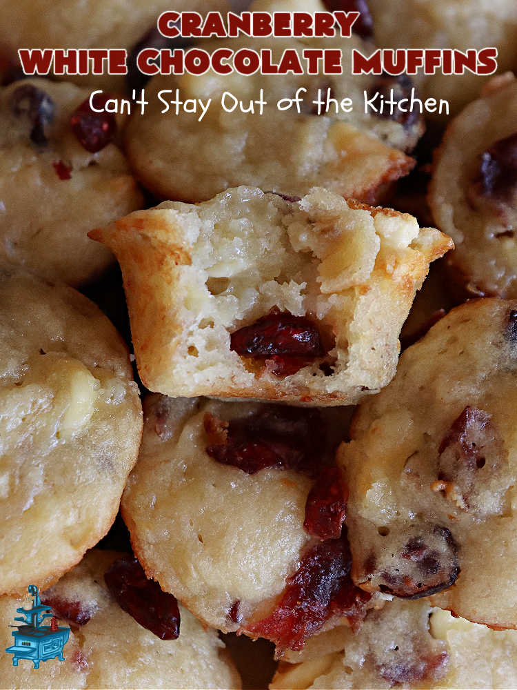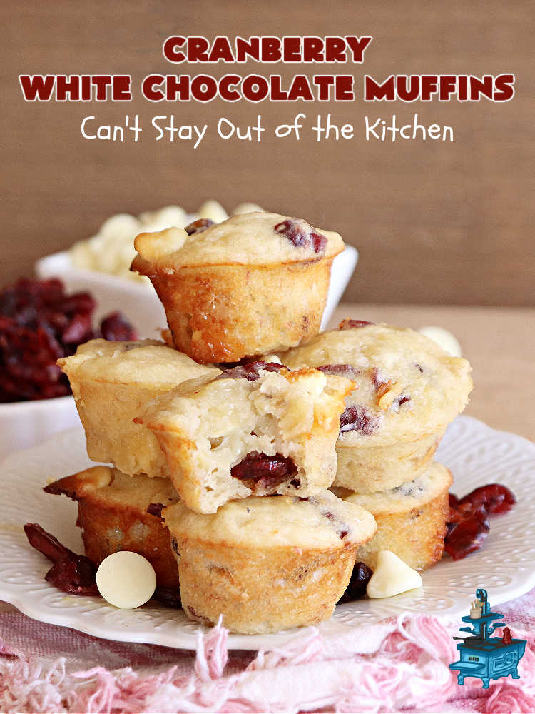 Cranberry White Chocolate Muffins are not only marvelous for a weekend, company or holiday breakfast, they’re good for potlucks, tailgating parties or anytime you need to pull out the snacks while you’re waiting for sports or music practices to end. š