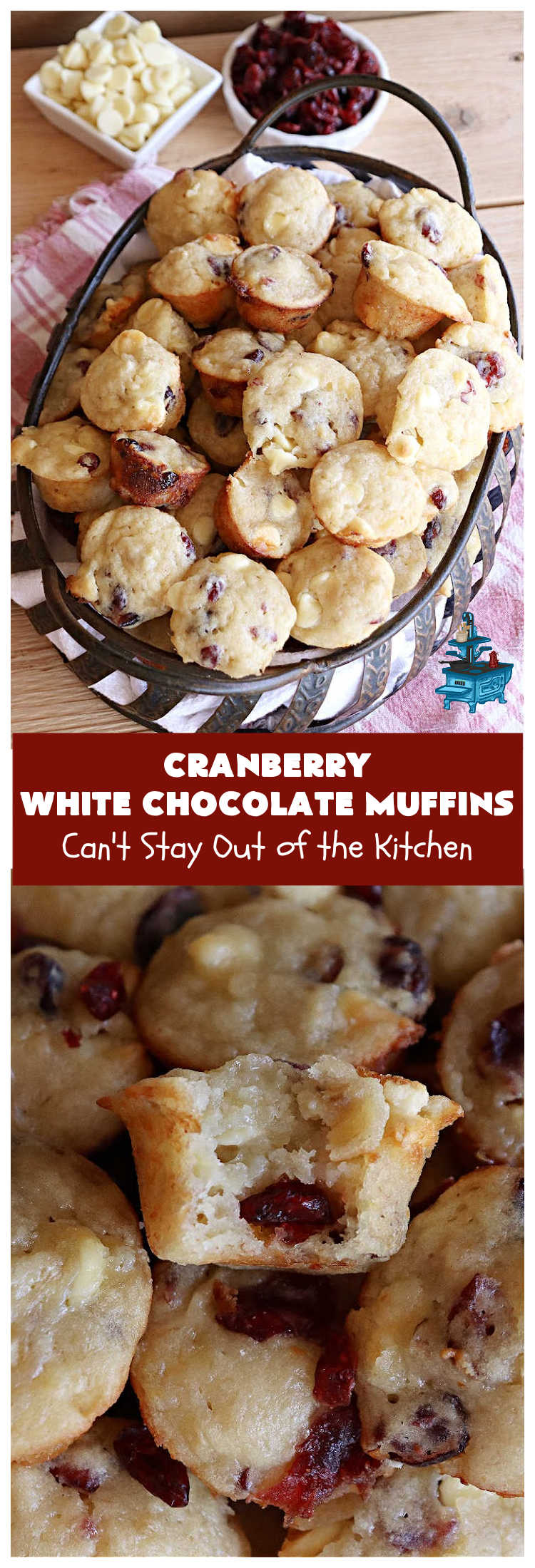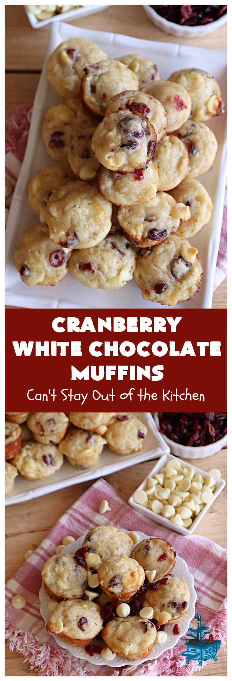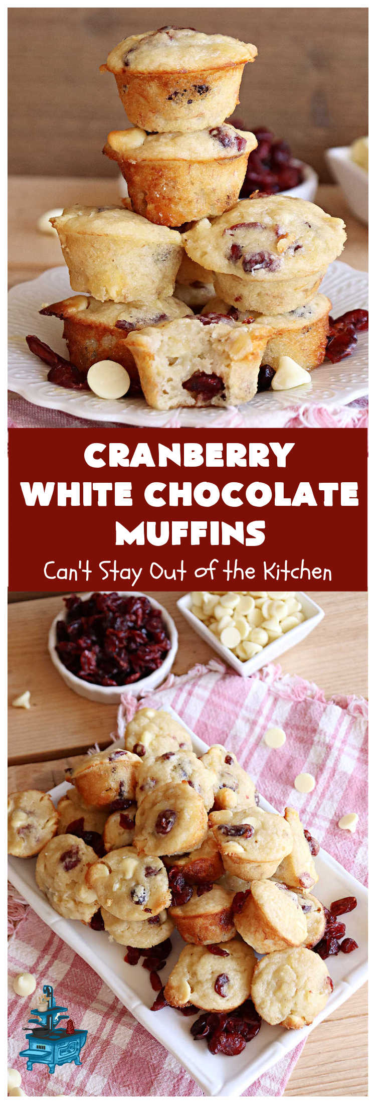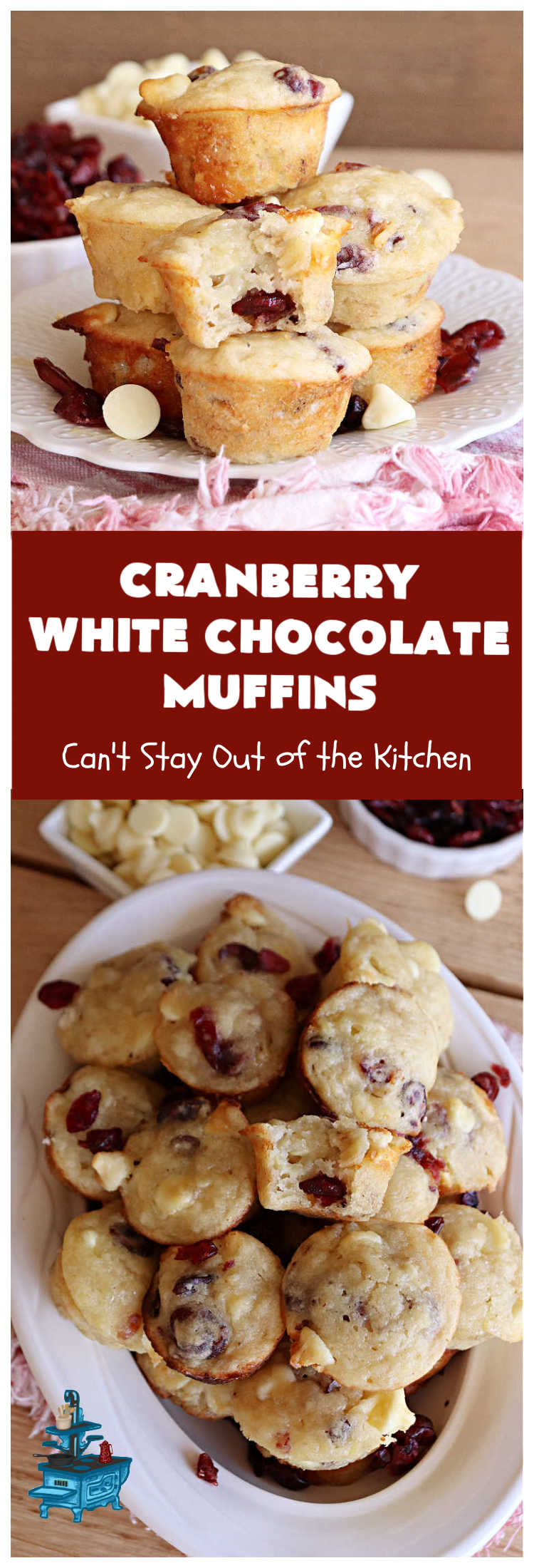 Cranberry White Chocolate Muffins are not only marvelous for a weekend, company or holiday breakfast, they’re good for potlucks, tailgating parties or anytime you need to pull out the snacks while you’re waiting for sports or music practices to end. š
