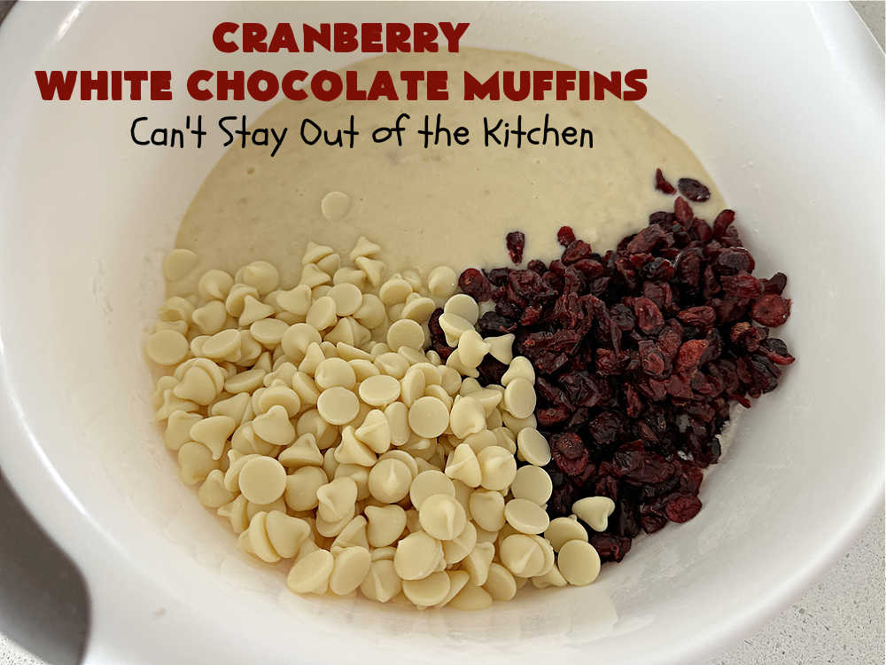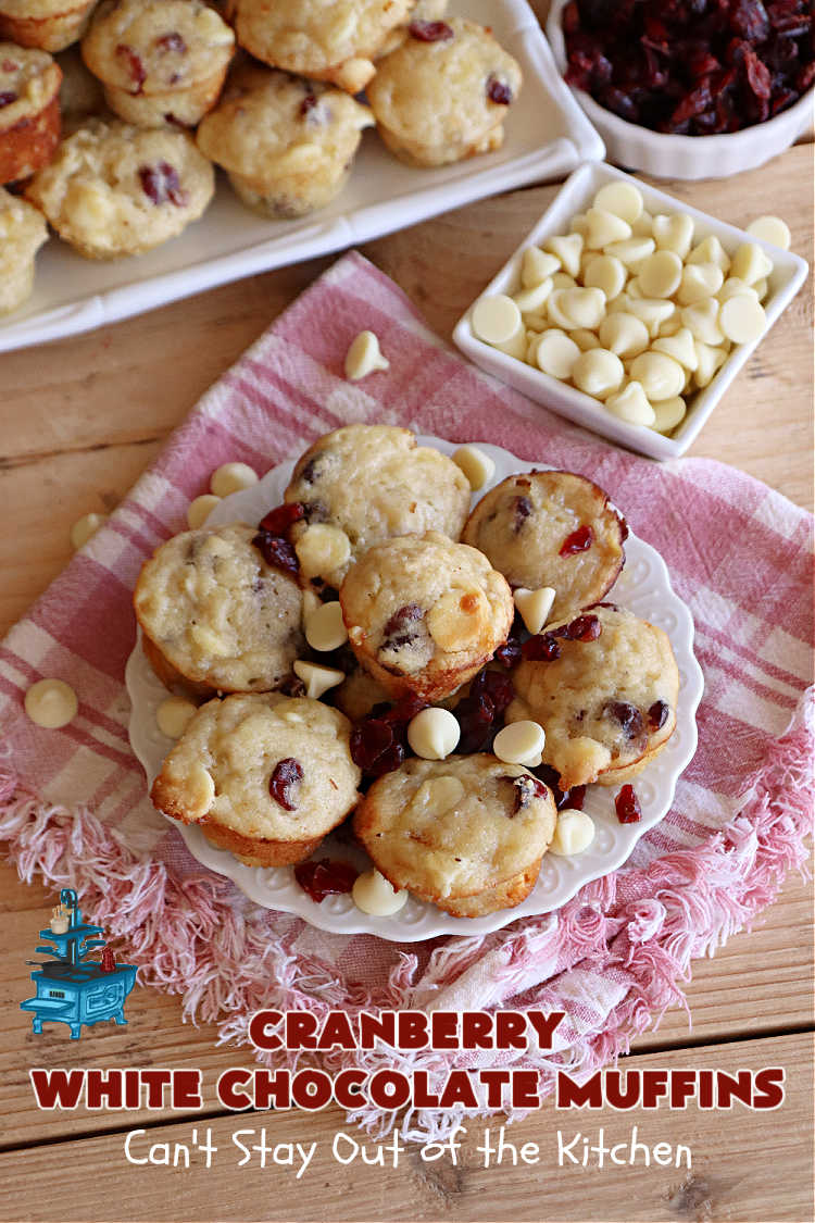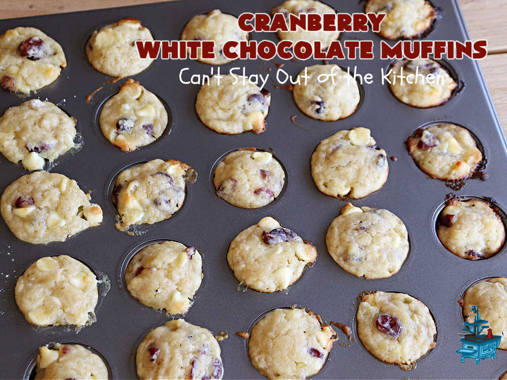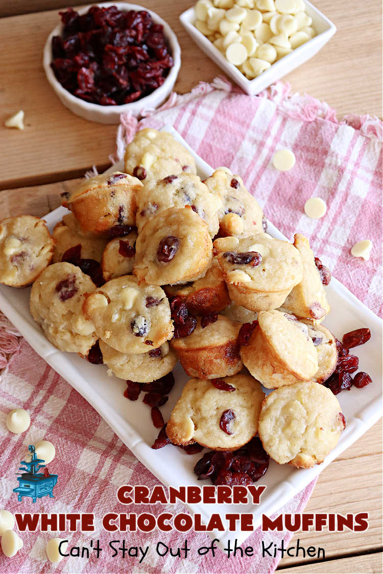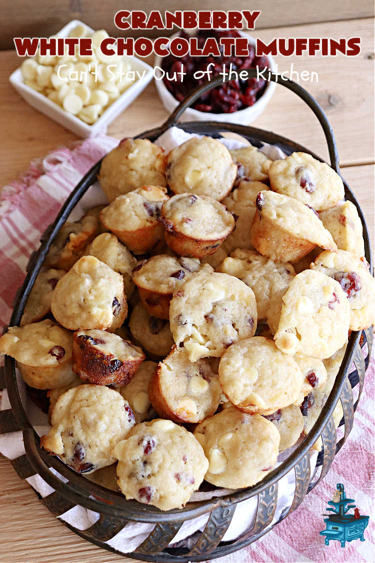 Cranberry White Chocolate Muffins are not only marvelous for a weekend, company or holiday breakfast, they’re good for potlucks, tailgating parties or anytime you need to pull out the snacks while you’re waiting for sports or music practices to end. š